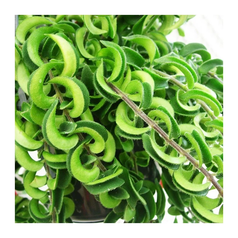 Ramas colgantes con aspecto de tirabuzones caracterizan al Aeschynanthus ‘Twister’. Su parecido a un sacacorchos se debe a la forma recurvada y semicerrada de las hojas y a su disposición a lo largo de los tallos.