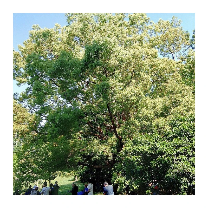 Árbol de tronco ancho y corteza lisa, de color pardo grisáceo, con ramas ascendentes, copa frondosa y porte piramidal.