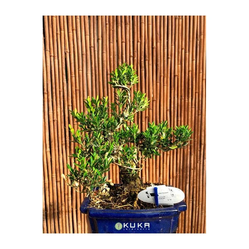 Forma bola baja. Arbusto perennifolio y monoico de larga vida. Ideal para recortar y macetas. Se utiliza contra el reumatismo.