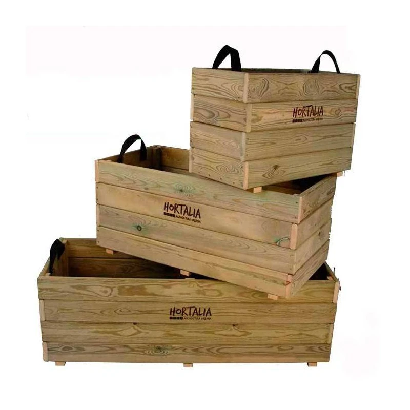 Hortalia nos ofrece su colección de jardineras de madera ghio KD, se sirven desmontadas y provistas de los herrajes e instrucciones necesarios para su montaje. Diseño rústico para embellecer cualquier rincón de su hogar, jardín, trabajo, etc… Fabricado con madera de pino nórdico.