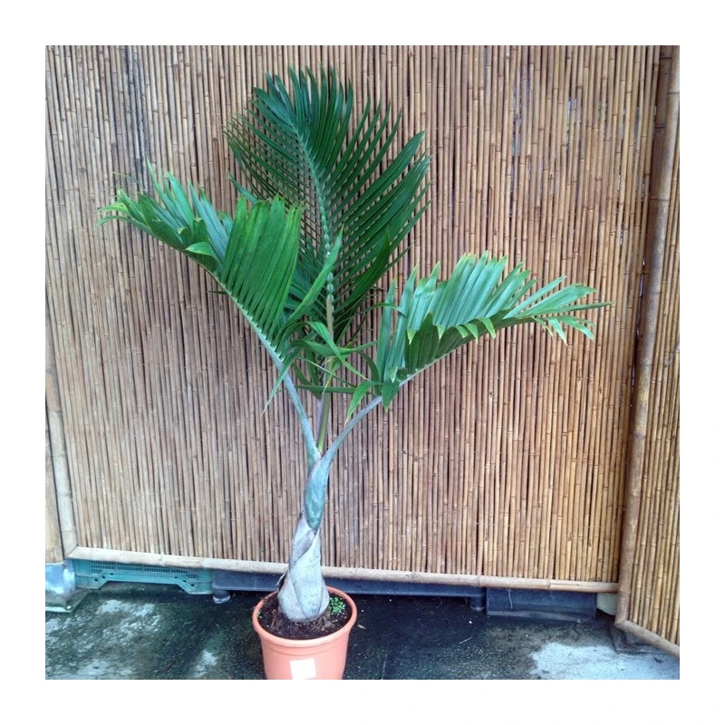 Lagenicaulis significa cuello de botella. En su origen esta palmera está amenazada de extinción, por ello resulta interesante que se reproduzca como palmera ornamental.