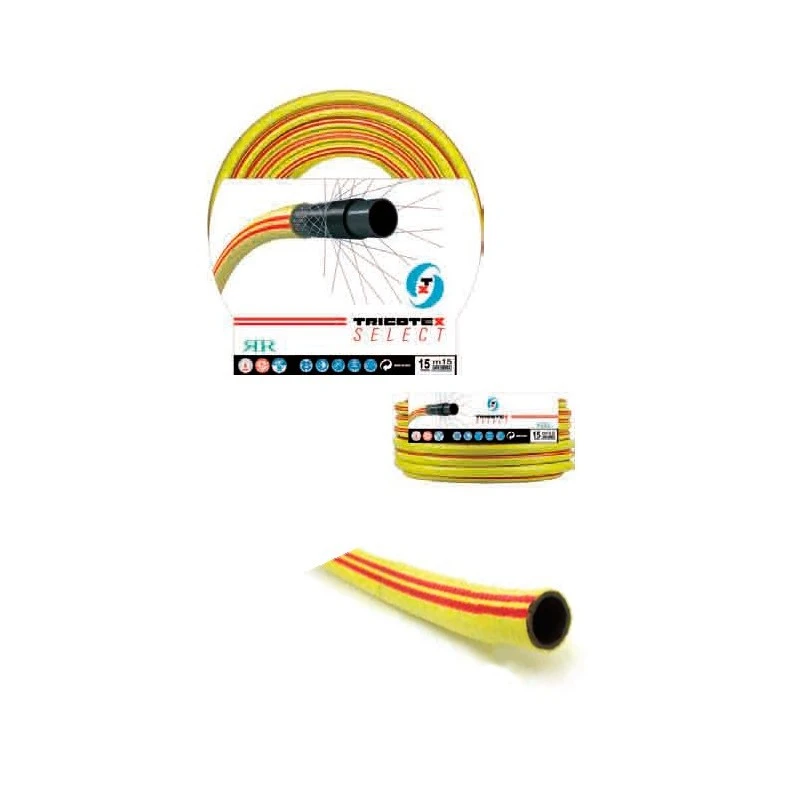 MANGUERA TRICOTEX SELECT caracterizada por el refuerzo de doble malla tricotada y 3 capas, proporcionan una excepcional resistencia a la presión y la dilatación del tubo incluso en las condiciones más extremas, sin la formación