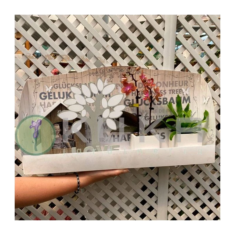 Orquidea Phalaenopsis Mini Con Casa Y Jardín.