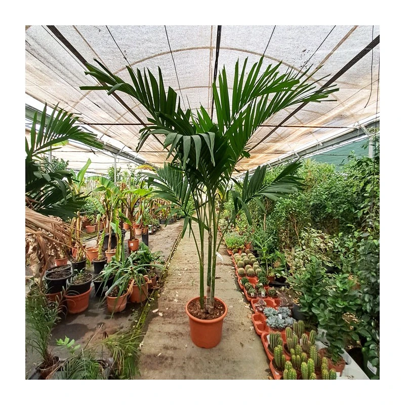 Veitchia Merrillii es una elegante palmera conun tronco delgado, liso y gris; una capitel larga; grandes hojas arqueadas con segmentos colgantes.